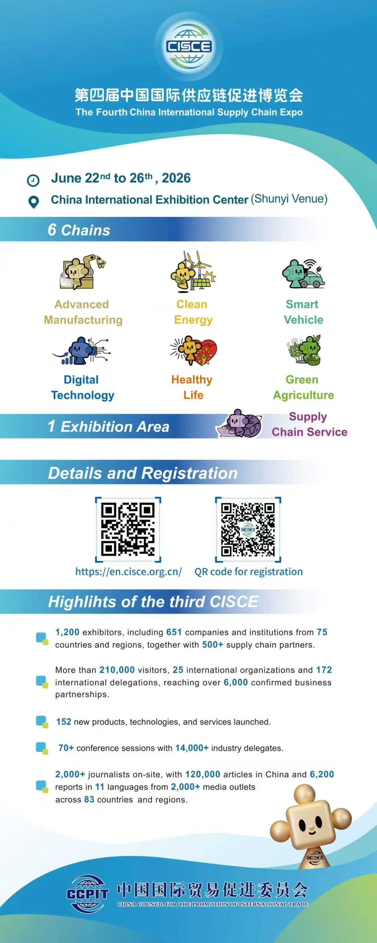第四届链博会将于2026年6月22日-26日在北京中国国际展览中心(顺义馆)举办。在延续先进制造链、清洁能源链、智能汽车链、数字科技链、健康生活链、绿色农业链6大链条和供应链服务展区的基础上,还将在数字科技链增设人工智能专区。我们诚挚邀请丹麦企业加入链博会大家庭,深化交流合作,共享发展机遇。